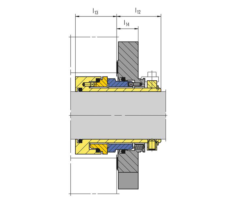 Single seal, same as Cartex-SN but with throttle ring (item 16). The cover has auxiliary connections for flushing and quench.